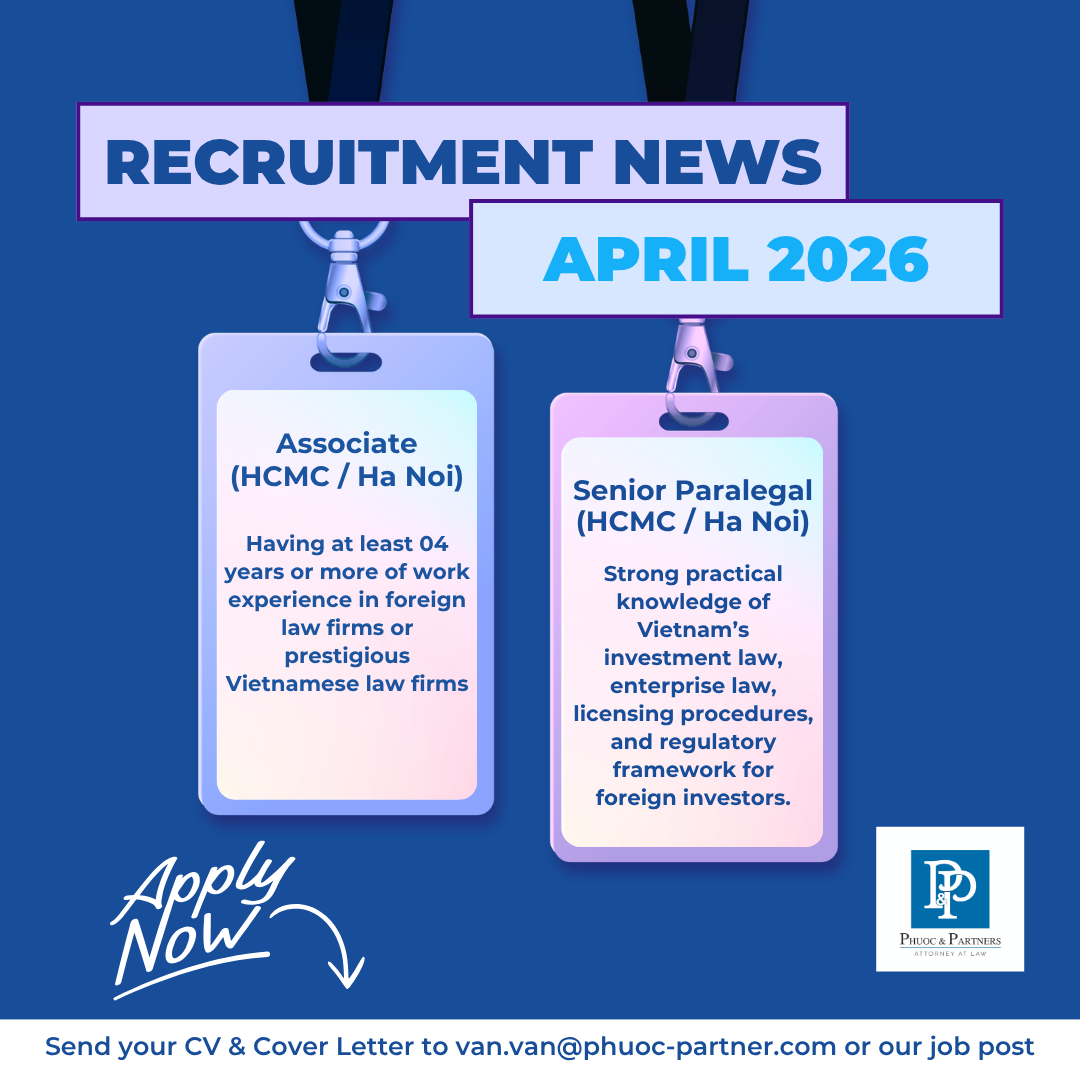April 7, 2026Published by Lawyer Phuoc Partner on April 7, 2026[APRIL RECRUITMENT] PHUOC & PARTNERS IS HIRING ASSOCIATE & SENIOR PARALEGAL IN HO CHI MINH CITY & HANOI